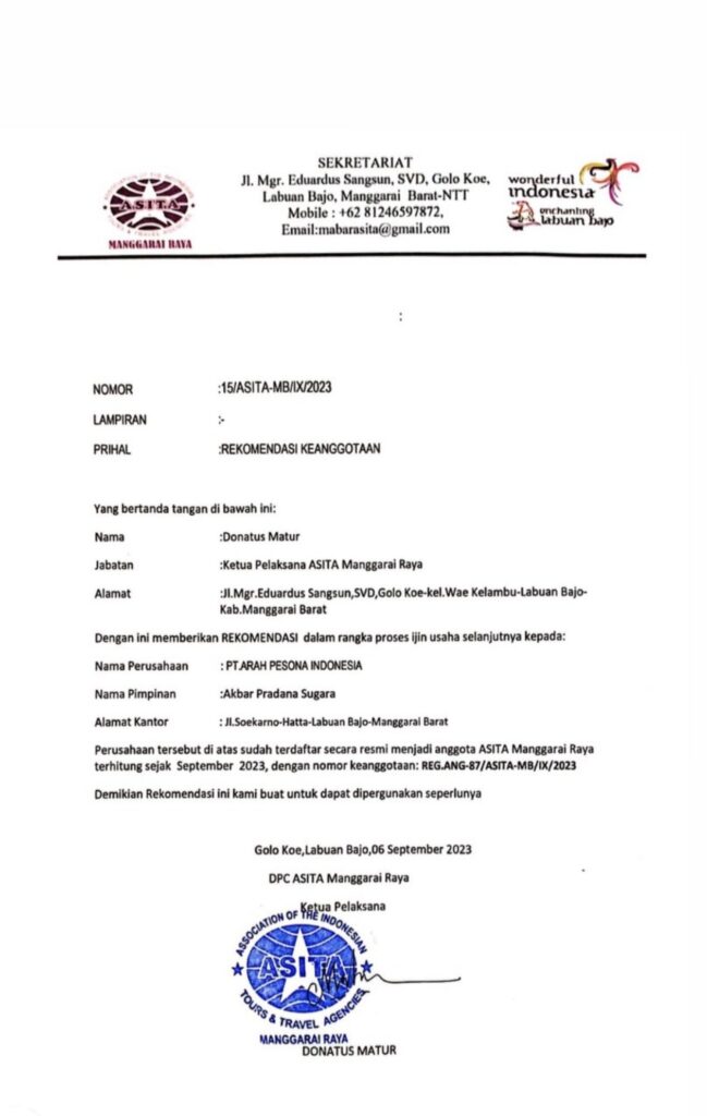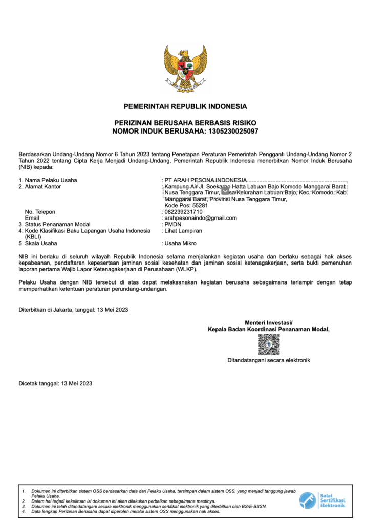 We operate legally under PT Arah Pesona Indonesia and are officially registered with a Business Identification Number (NIB), ensuring a safe and trusted travel service.