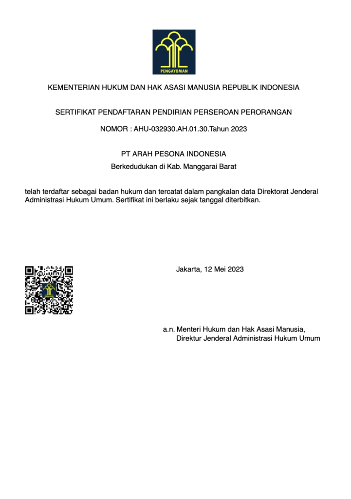 For your assurance, you can directly verify our company’s legal status on the official website of the Ministry of Law and Human Rights of the Republic of Indonesia.